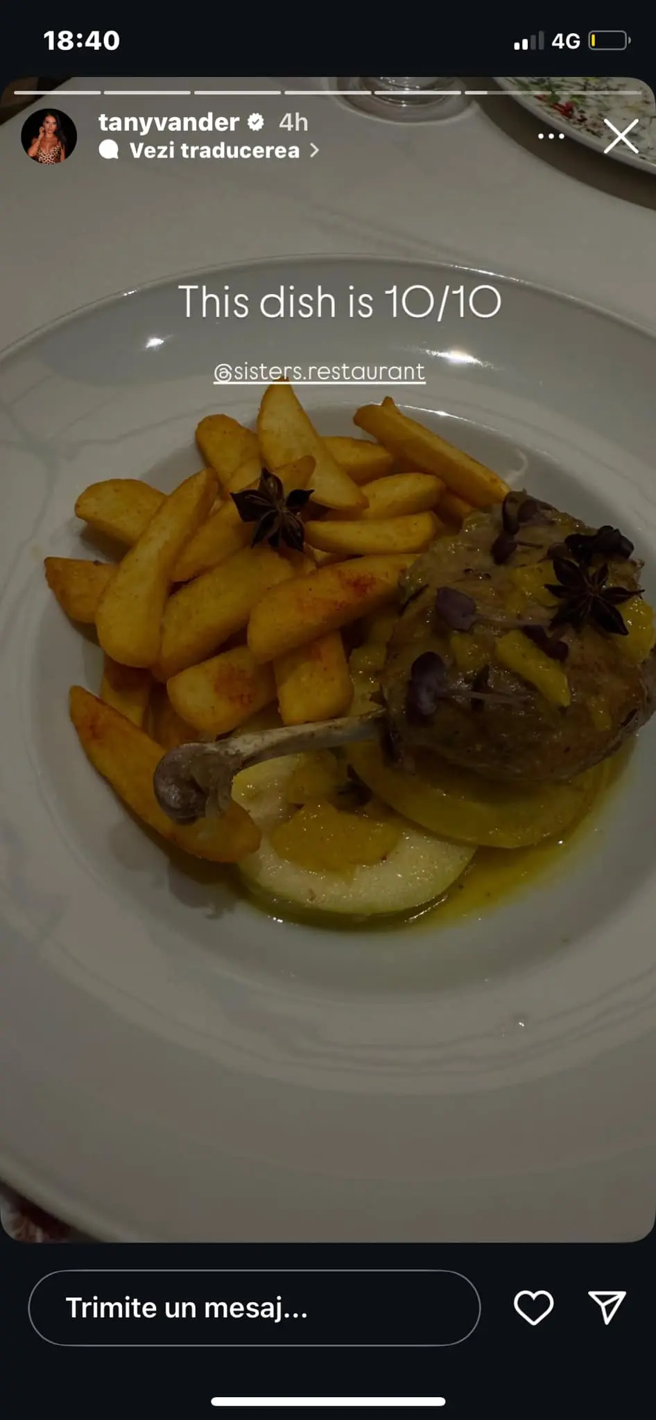 Bucătarul a subliniat că, deși Tany Vander se prezintă ca un expert și „lux, inclusiv culinar”, ea a ales să aprecieze o farfurie care conținea anason – un condiment care nu avea ce căuta într-un astfel de preparat.