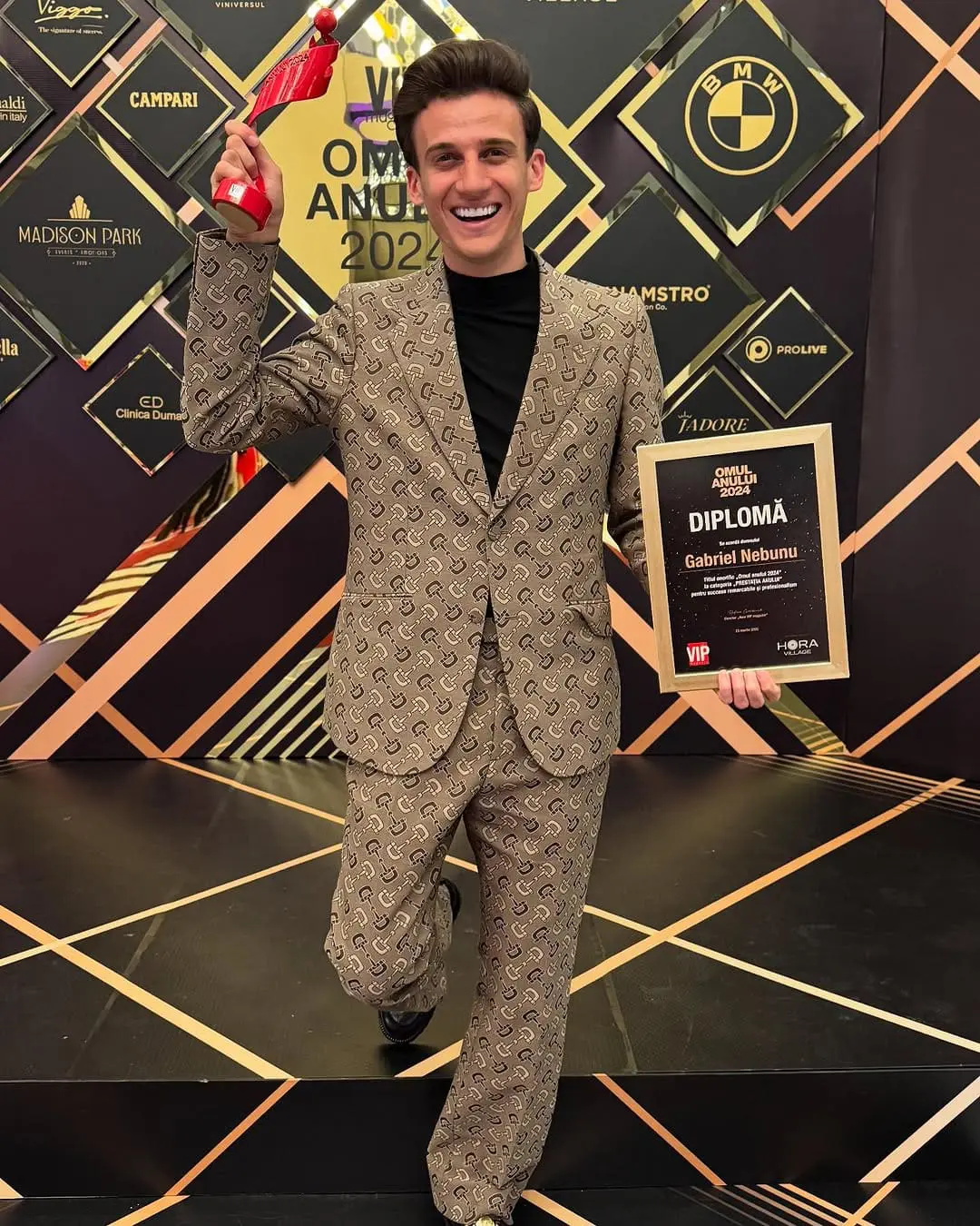 Cântărețul de muzică populară, Gabi Nebunu a fost distins ieri cu titlul „Omul Anului„, de revista VIP Magazin. Artistul a fost nominalizat la categoria „Concertul Anului„, pentru show-ul organizat de către acesta la Arena Chișinău pe 10 octombrie 2024, unde a adunat patru mii de oameni și a vândut până la ultimul bilet. Interpretul a făcut furori și la Gala de decernare a premiilor. Proaspăt poposit din America, acesta și-a lăsat opincile, costumul popular și s-a îmbrăcat într-un costum Gucci, asortat cu maletă neagră și loaferi masivi, pretinzând lesne și la titlul non-formal de cel mai stilat și scump îmbrăcat bărbat prezent la Gală.