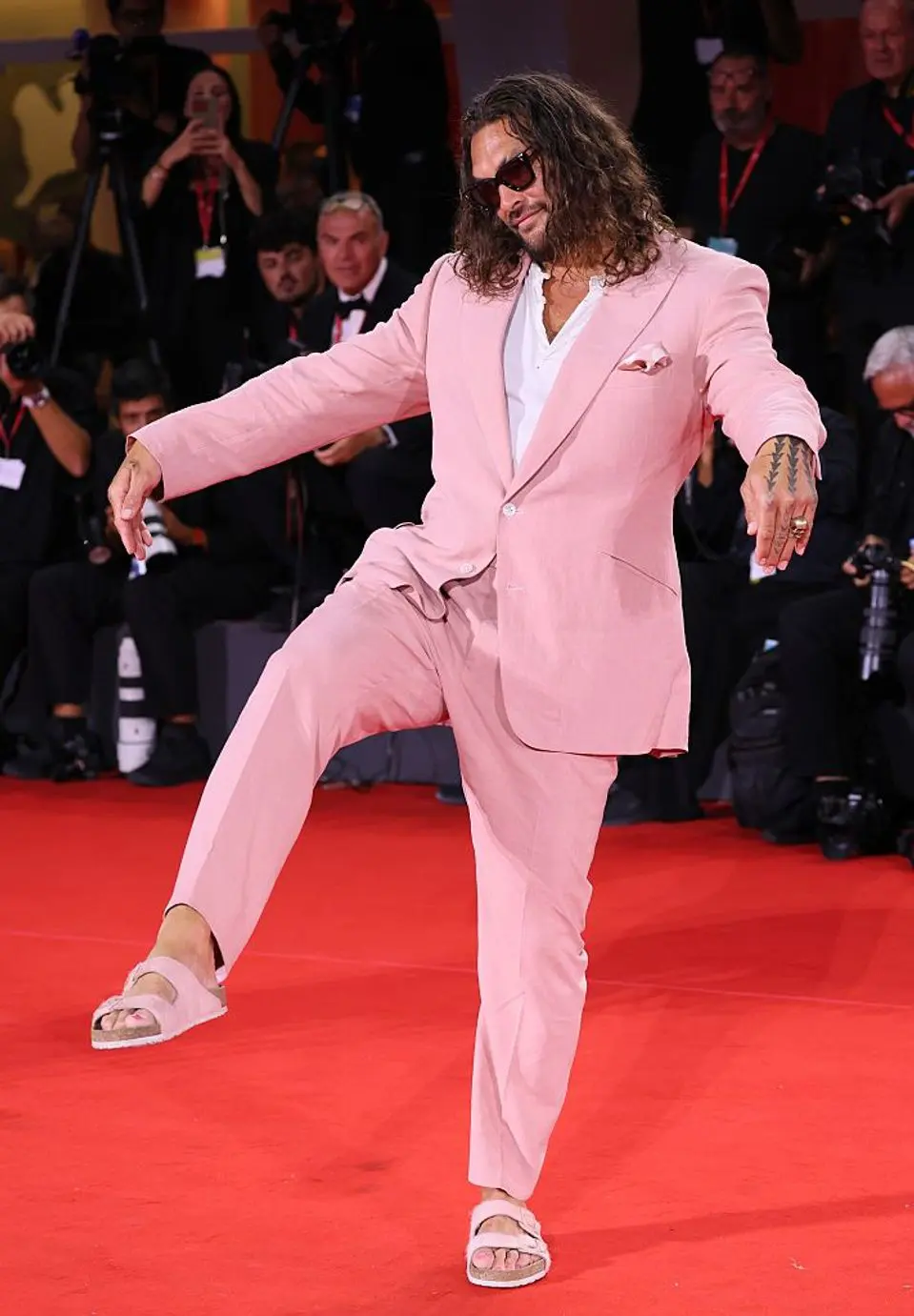 Aflat la premiera noului său film, „In the Hand of Dante” (În mâna lui Dante), Jason Momoa, în vârstă de 46 de ani, a defilat într-un costum roz format din jachetă și pantaloni asortați, completat de o pereche de papuci Birkenstock în aceeași tonalitate. Însă unghiile de la picioare, vopsite cu ojă roz, au atras cu adevărat atenția fotografilor. Deși actorul este cunoscut pentru stilul său nonconformist, alegerea sa cromatică a stârnit comentarii aprinse, chiar și printre admiratoarele lui înfocate. „Era atât de sexy, după mine a greșit aici”; „Cum poți să distrugi frumusețea unui bărbat”; Unii oameni se trezesc dimineața și uită cine sunt, unde se află și ce fac”, sunt doar câteva dintre reacțiile unor italieni, după ce o publicație de divertisment a publicat pozele pe pagina de socializare.