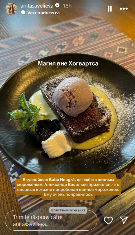După eveniment, prezentatorul nu a plecat din Moldova, dar a rămas să o cunoască mai bine. Bloggerița, Anita și afacerista, Tatiana Ivanova l-au dus la o locație emblematică, Castel Mimi, unde Vasiliev a gustat pentru prima dată un desert pe bază de vin și a rămas impresionat de savoarea pe care a descoperit-o. Ca și orice oaspete al țării, Vasiliev a gustat mămăliga și vinul moldovenesc, după care i-a apărut chef de glume la masă