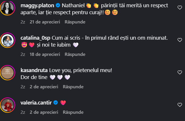 Vă mulțumesc din suflet”, a scris Nathaniel.