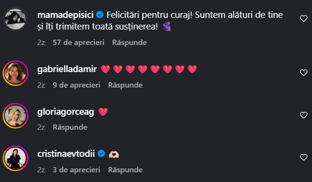 Mai multe persoane publice i-au transmis mesaje de susținere și încurajare.