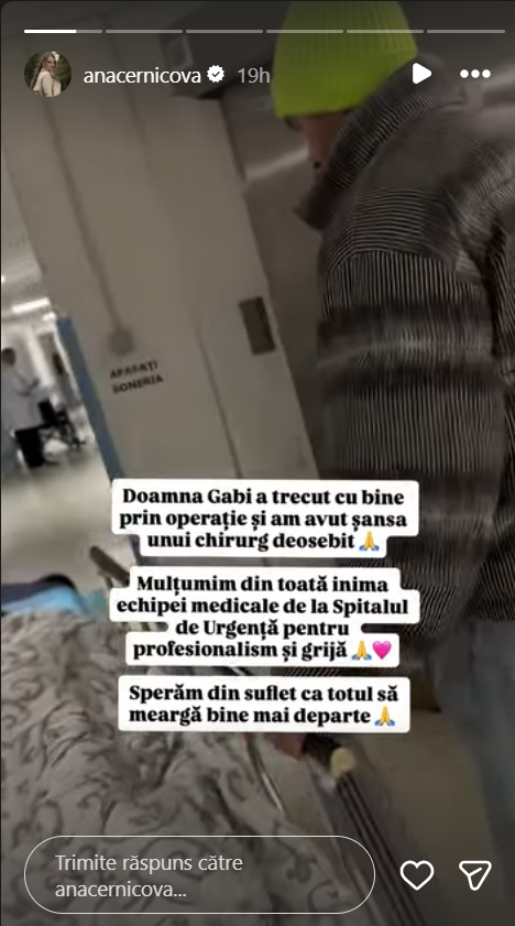 Cuplul nu a dezvăluit ce i s-a întâmplat femeii, dar aceștia au petrecut seara de miercuri pe culoarele spitalului, unde Gabriela Lungu a fost operată cu succes.