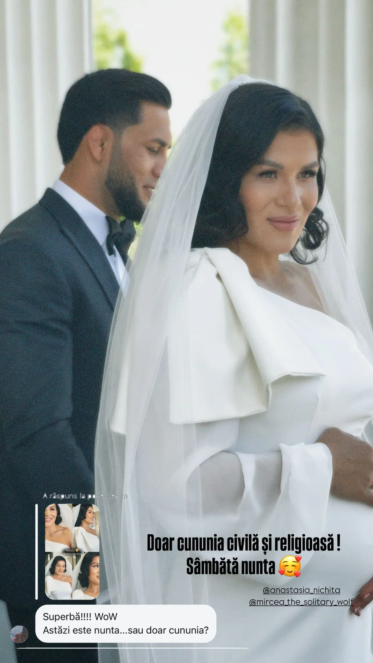 Primele fotografii de la eveniment le-a distribuit prietena Anastasiei, stilista, Valeria Canțîr și Gabriel Nebunu, prezenți la cununie.
