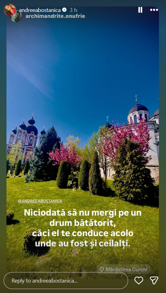 Însăși Andreea nu a făcut vreo postare de la mănăstirea Curchi, probabil pentru a nu fi comparată cu Iuliana Beregoi.