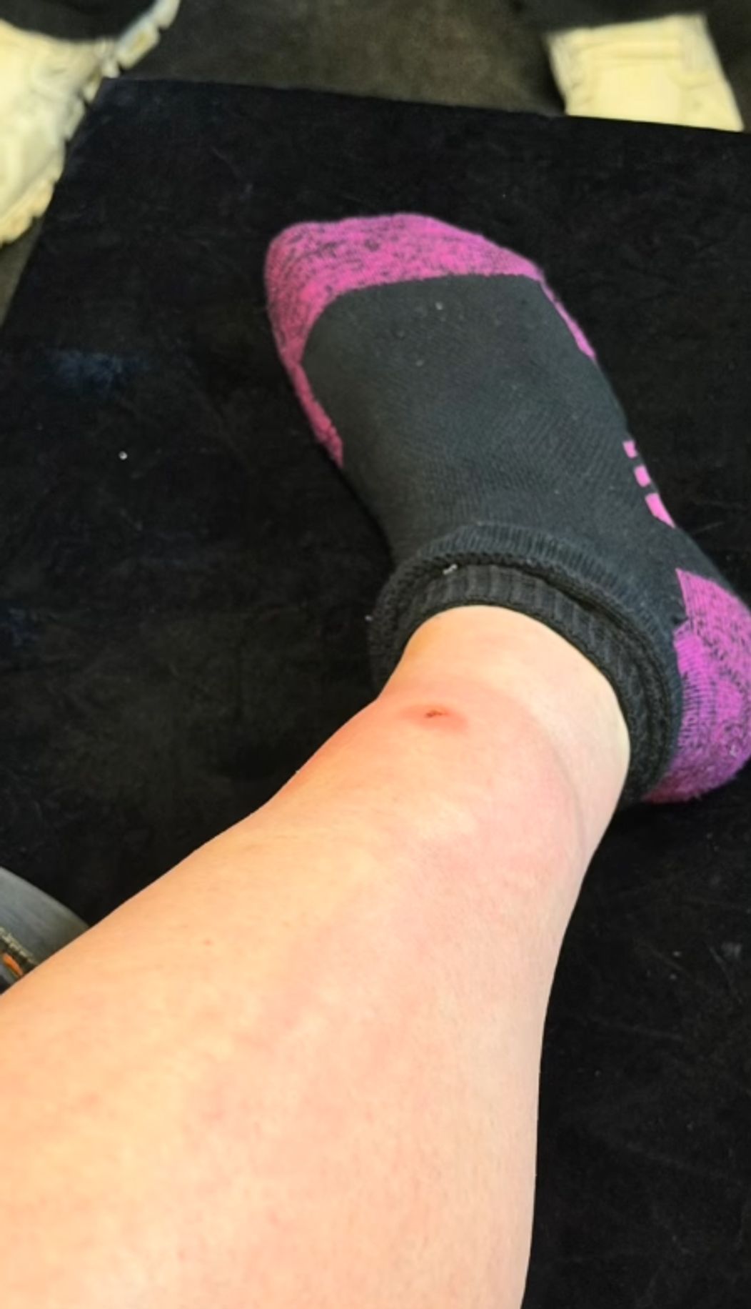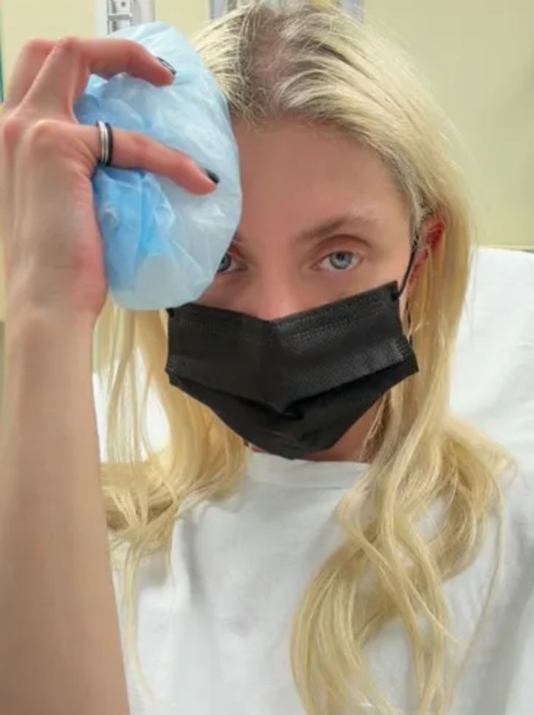 La câteva ore după incident, pe piciorul artistei a apărut o pată roșie care s-a extins treptat, zona devenind inflamată și dureroasă, motiv pentru care aceasta a ajuns de urgență la spital.