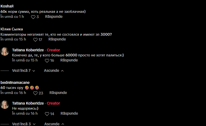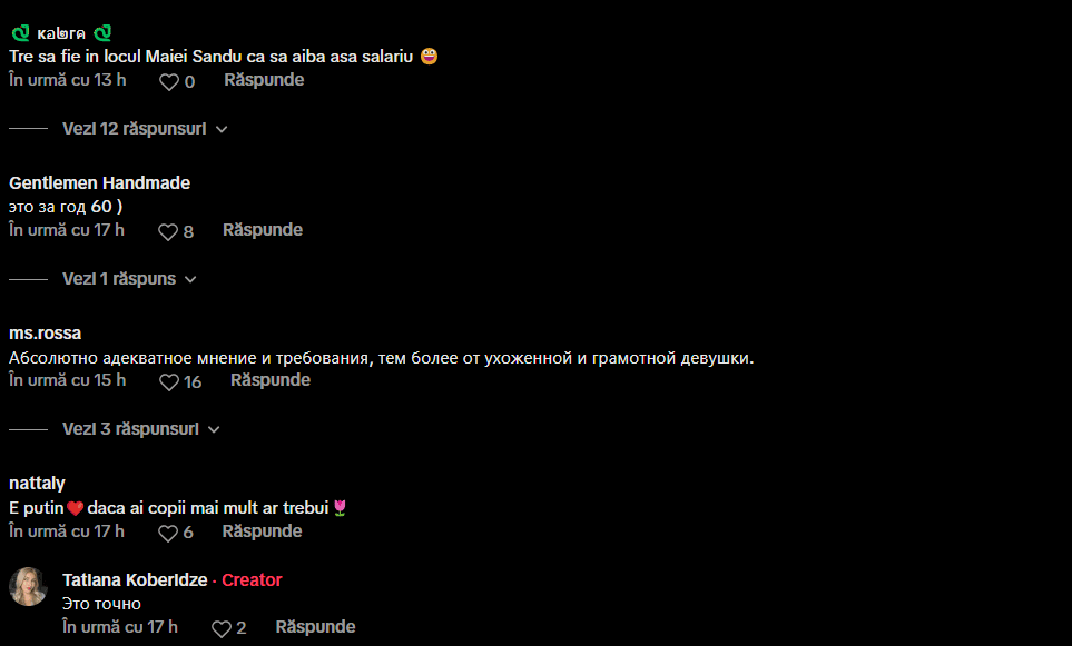 Un filmuleț al unei bloggerițe de la noi, Tatiana Koberidze, populară în special pentru stilul ei de viață axat pe călătorii, a stârnit discuții contradictorii pe TikTok. Totul a pornit după ce femeia și-a spus părerea referitor la faptul cât ar trebui să câștige un bărbat din Moldova, pentru a asigura un trai decent.