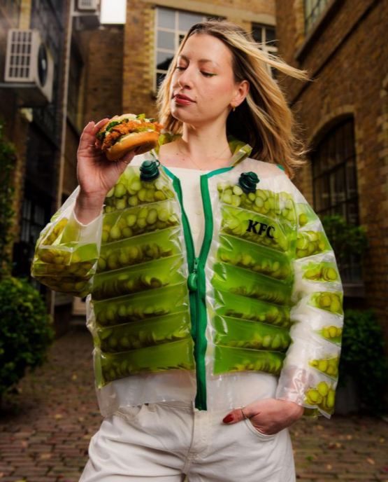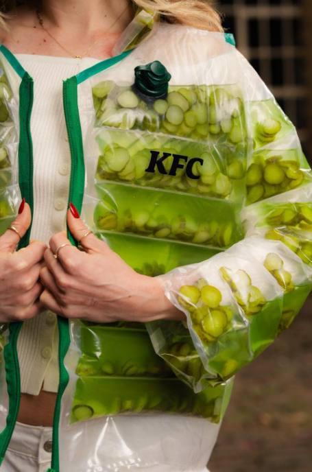 O jachetă în ediție limitată, umplută cu felii de castraveți murați și saramură – produse autentice -, este pe cale să devină accesoriul vestimentar must-have al primăverii, pentru fanii lanțului de restaurante fast-food KFC, scrie antena3.
