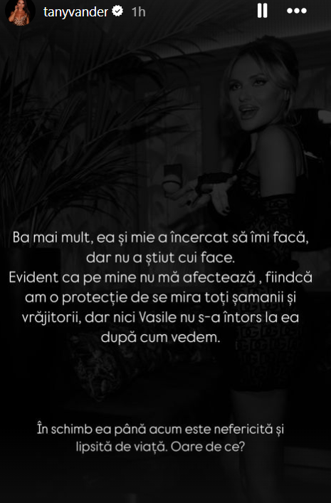 Aceasta susține că una dintre fostele lui Vasile ar fi pus la cale un plan odios, dar care nu a funcționat. Vander s-a lăudat că are protecție puternică și nu o iau vrăjile prost făcute.
