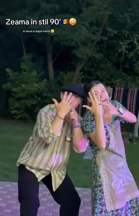 După nuntă, mirii și-au invitat oaspeții la zeamă, așa cum e obiceiul. Petrecerea a fost în stilul anilor 90, s-au îmbrăcat potrivit vremurilor și i-au încurajat pe oaspeți să o facă și ei.0