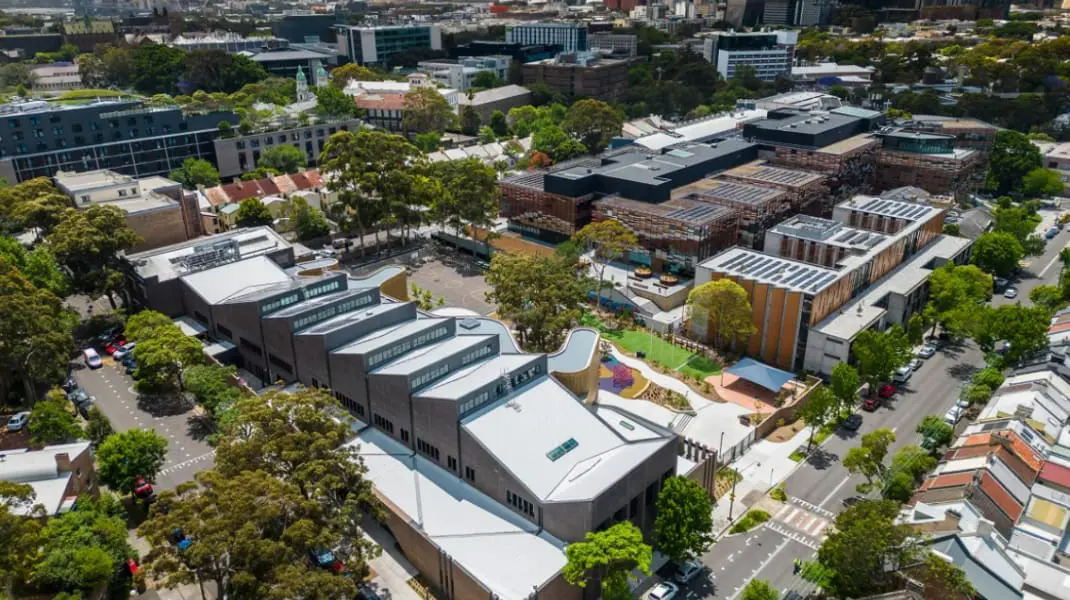 Pe amplasamentul din sudul orașului Sydney se afla de mult timp o școală, dar vechea clădire din anii 1970 nu mai îndeplinea cerințele actuale, potrivit celor de la fjcstudio, biroul de arhitectură care a realizat proiectul.