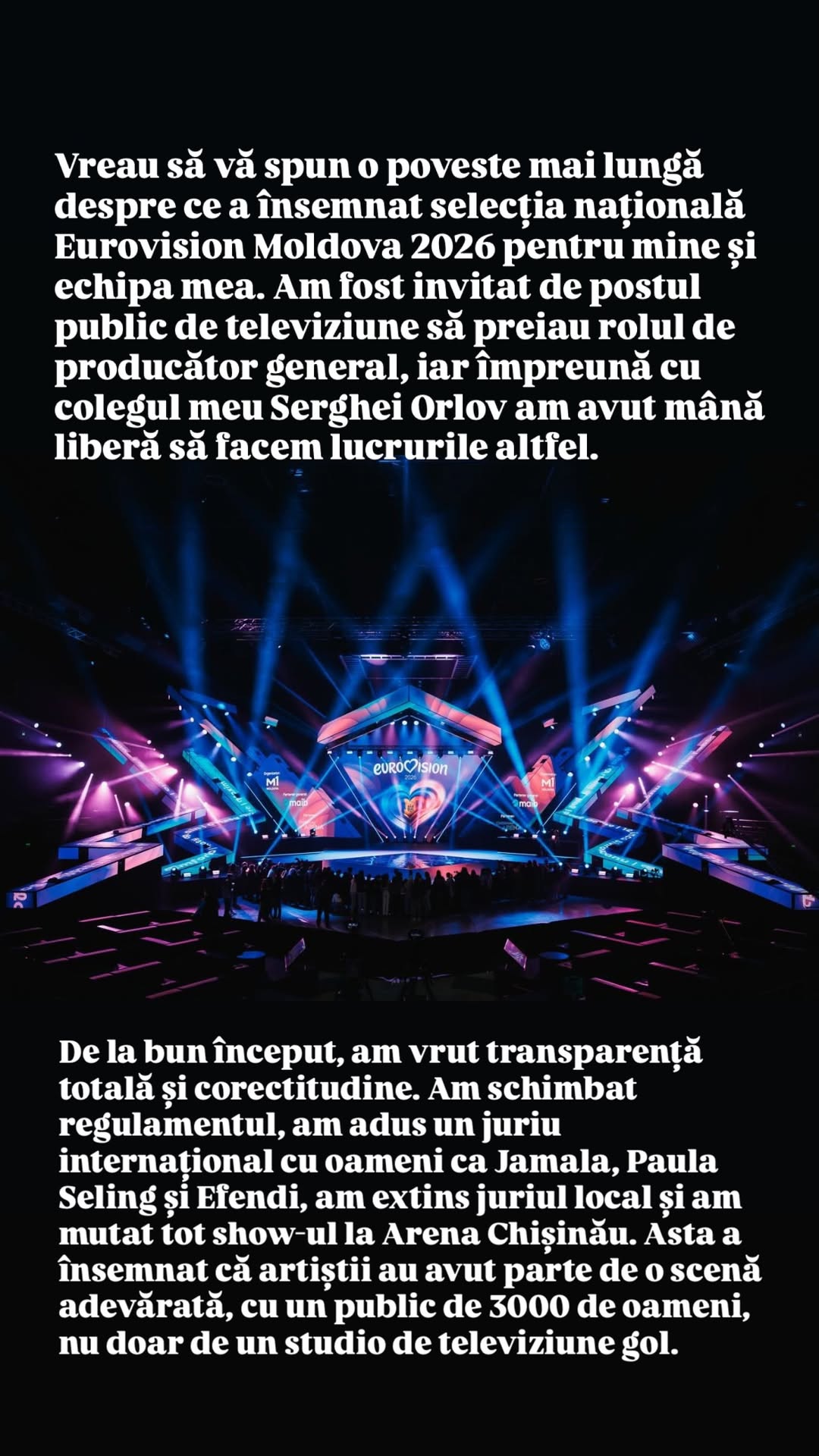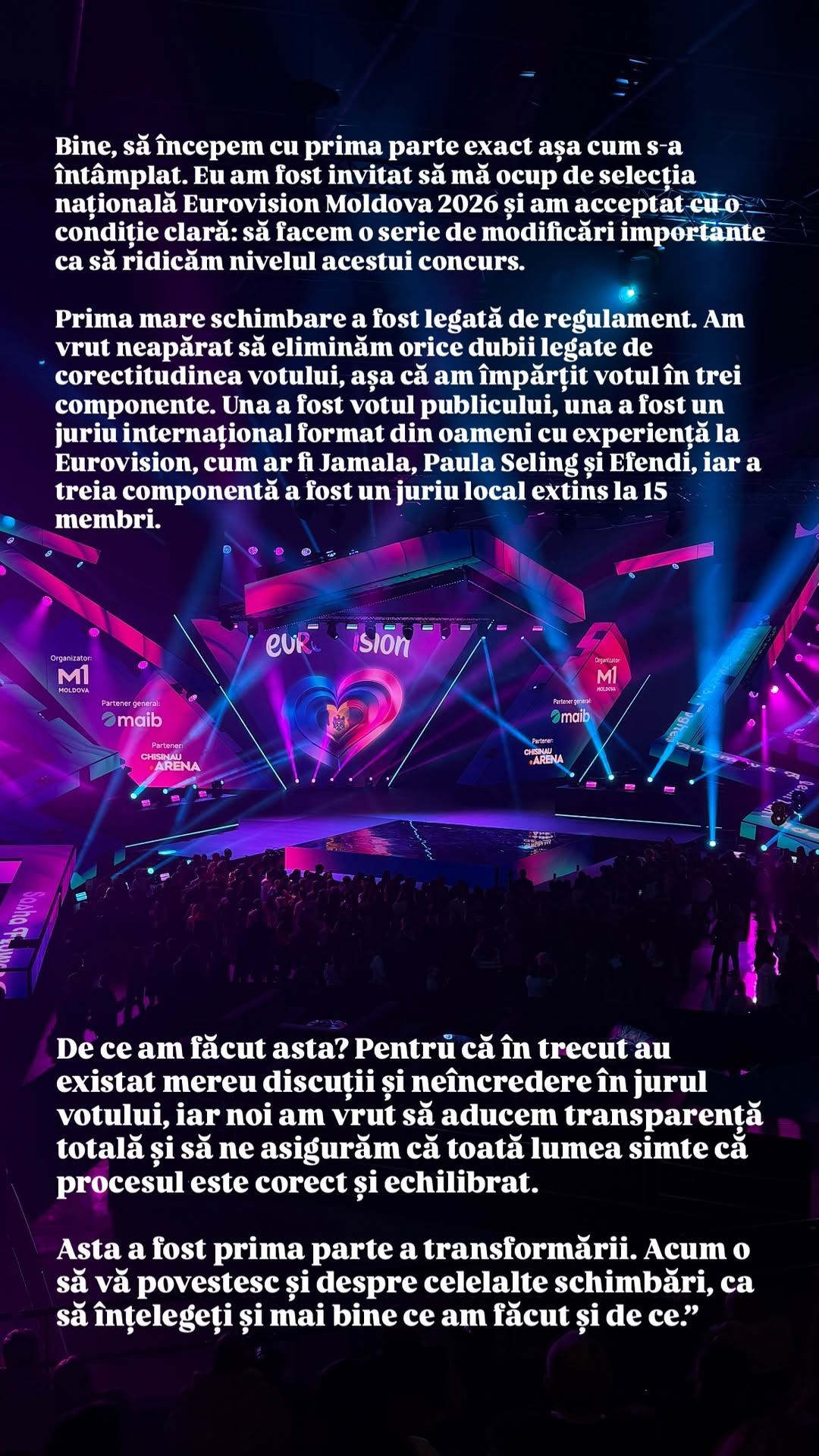 Roman Burlaca a scris pe blogul său de pe Instagram despre schimbarea locației pentru desfășurarea concursului, a regulamentului, invitarea juriului internațional și munca contra cronometru cu fiecare concurent în parte.