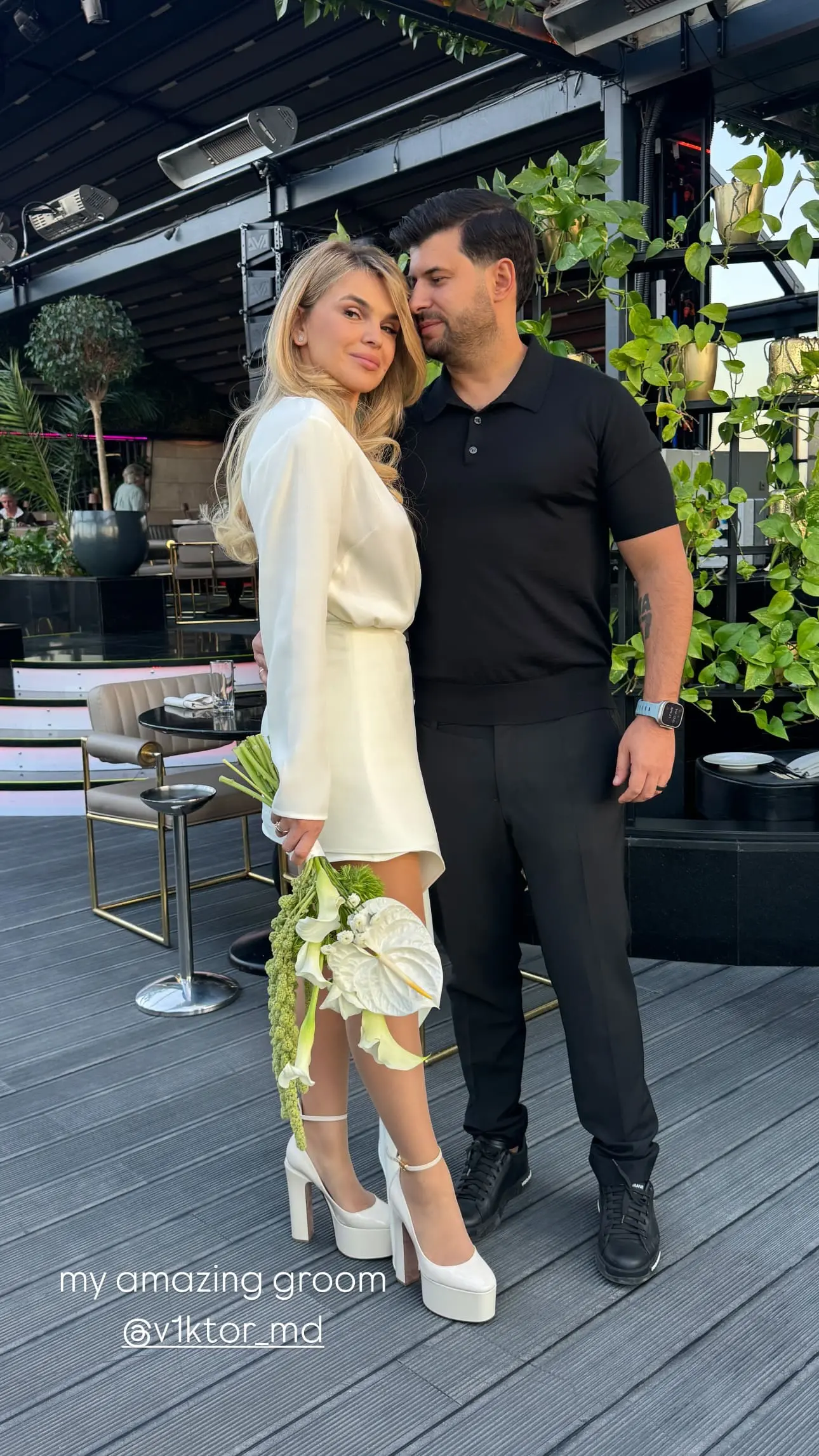 Așadar, pentru petrecere influencera a optat pentru o altă ținută, dar tot albă. A avut și un buchet de mireasă pe care ulterior l-a aruncat ca să-l prindă fetele nemăritate încă, care au venit la nunta lor 2.0.