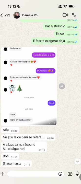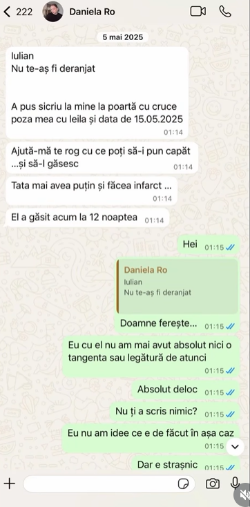Potrivit acestor mesaje, Iuliana a îndemnat-o să meargă la Poliție și i-a spus că nu mai are vreo legătură cu cel care ar fi responsabil de șantaj și amenințare.