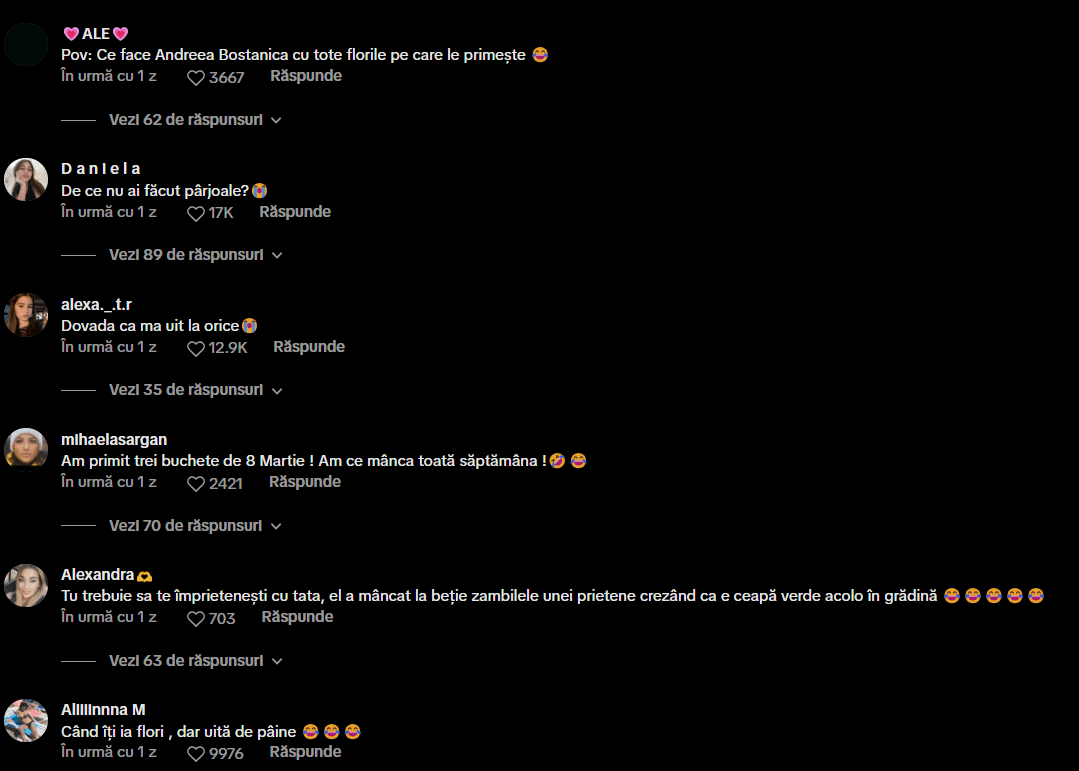 Tiktok-ul său a adunat peste 100 de mii de aprecieri și a fost redistribuit de peste 130 de mii de ori. Internauții s-au întrecut la glume în comentarii, una fiind mai ingenioasă decât alta.