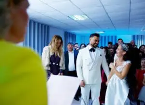 Invitație la nuntă au primit doar 50 de persoane, printre care Nikolas Sax, Bogdan Mocanu şi… surpriză! Naşul Cătălin Moroşanu! Sportivul şi soţia sa au fost aleşi drept părinţi spirituali pentru Jador şi proaspăta lui soţie deja însărcinată.