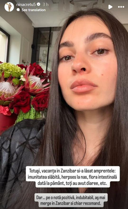 În contrast cu plajele, fauna și apa incredibilă a oceanului Indian, vin numeroasele deficiențe de igienă și alimentare, care le-au afectat sănătatea. Nina recunoaște că s-a ales cu herpes, flora intestinală afectată și diaree, după această vacanță.