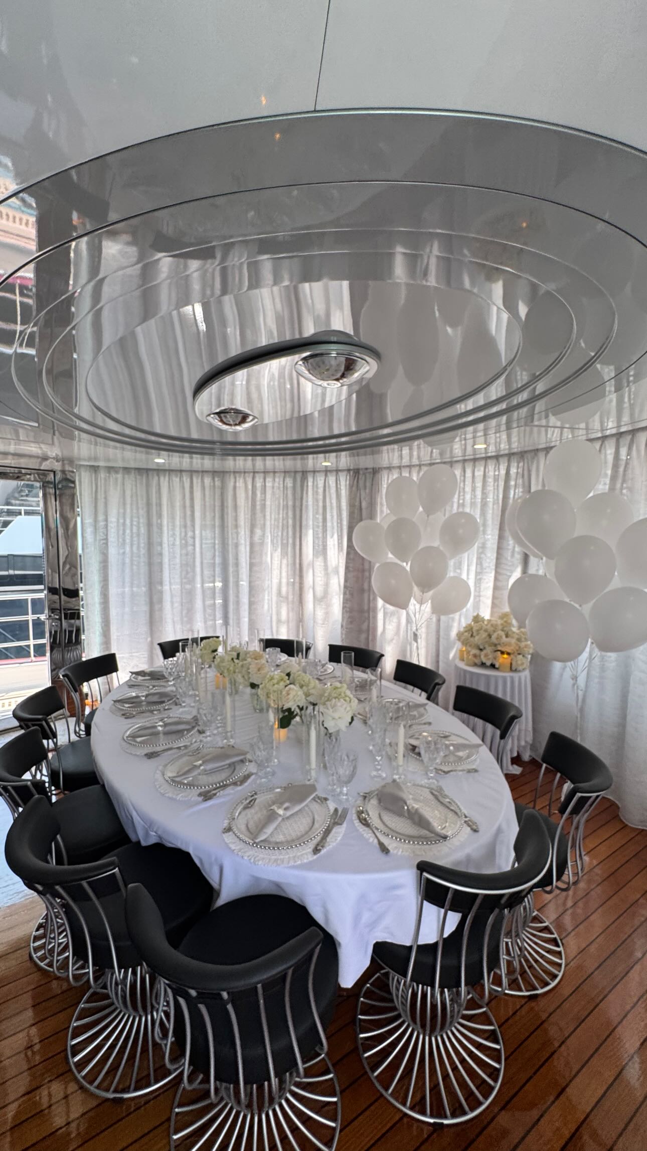Petrecerea propriu zisă are loc pe un iaht impunător, unde a fost amenajat totul pentru ca sărbătorita să se simtă la înălțime.