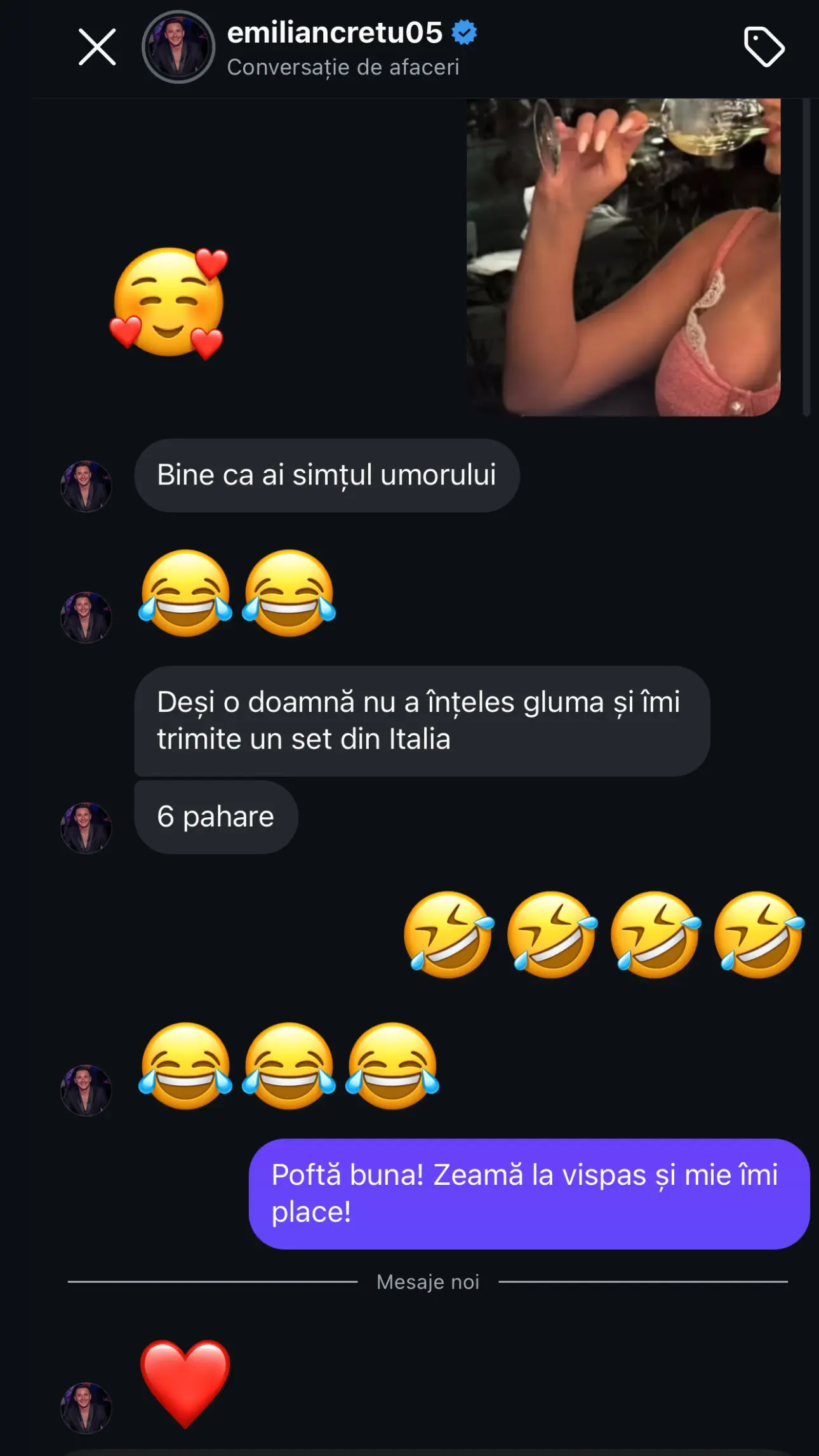 Vlada a stat să explice, că de fapt actorul s-a referit la faptul că fotografia pare editată în exces, pentru că paharul ar arăta deformat și nu a comentat versiunea că Emilian ar fi pus ochiul pe…silicoane.