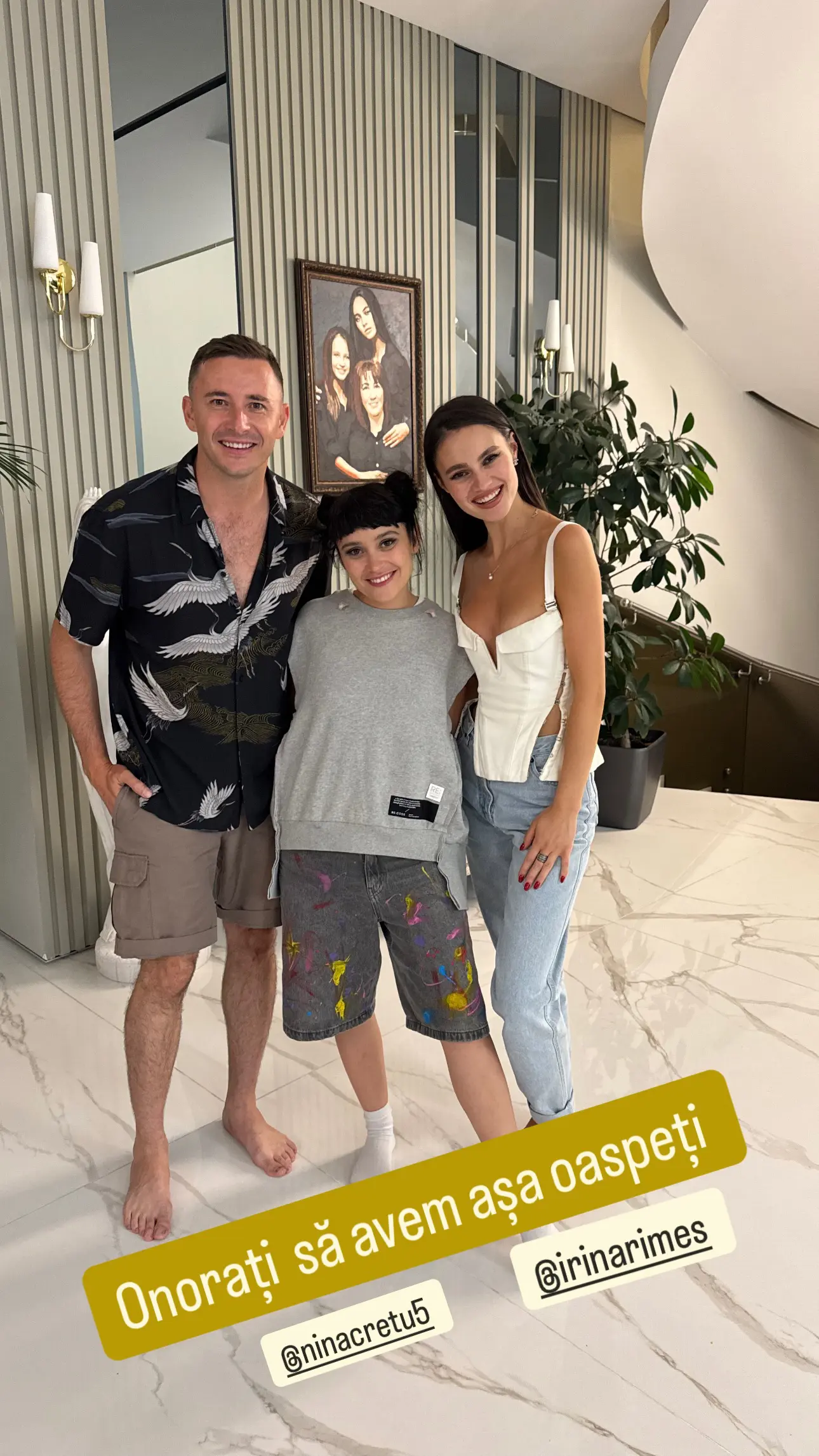„Onorați să avem așa oaspeți”, a scris Crețu și a postat câteva fotografii cu Irina. Împreună cu ea, în ospeție la Crețu a venit și o altă artistă, DARA.