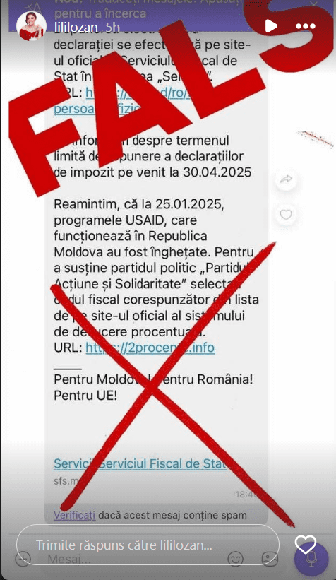 Susținătorii partidului de guvernare sunt ținta escrocilor, care apelează la simpatiile politice ale moldovenilor ca să-i scurgă de bani. Aceștia trimit mesaje pe Viber din numele Serviciului Fiscal de Stat, prin care cer ajutor pentru finanțarea PAS. Mesajul l-a primit și prezentatoarea TV, Lili Lozan.