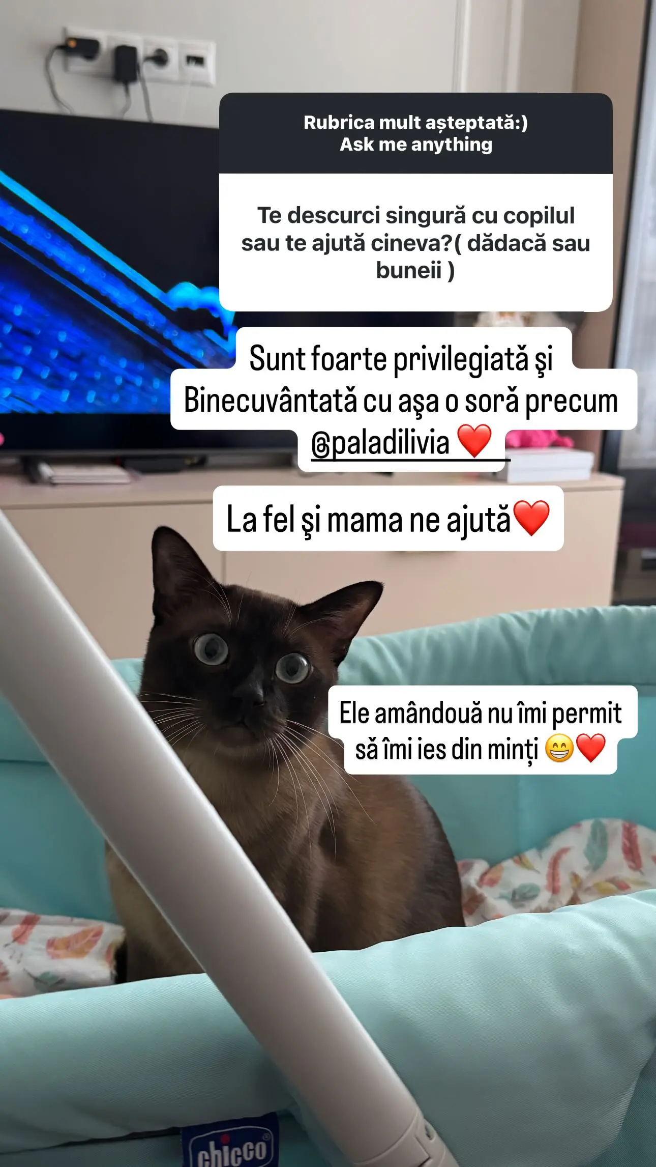 Proaspăta mămică alăptează și recunoaște că procesul a început cu năbădăi și că a uitat de odihnă, majoritatea nopților fiind albe. Tânăra însă are norocul să aibă ajutoare de încredere. Sora și mama îi sunt alături și au grijă împreună de bebeluș.