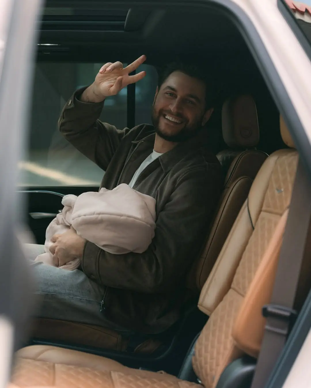 Cuplul a postat o serie de fotografii înduioșătoare din sala de naștere și de la externare, dar păstrează în secret sexul copilului.