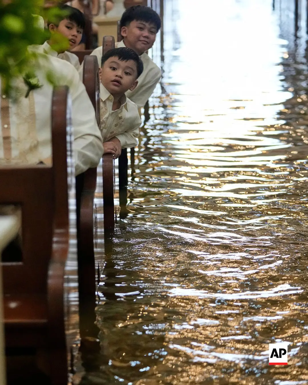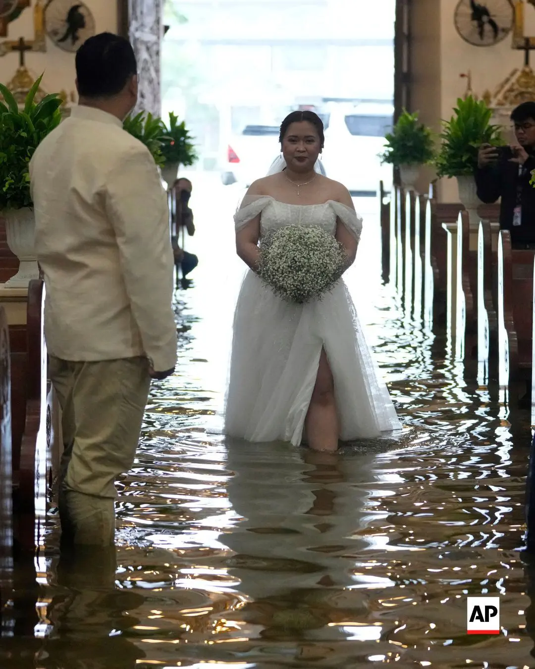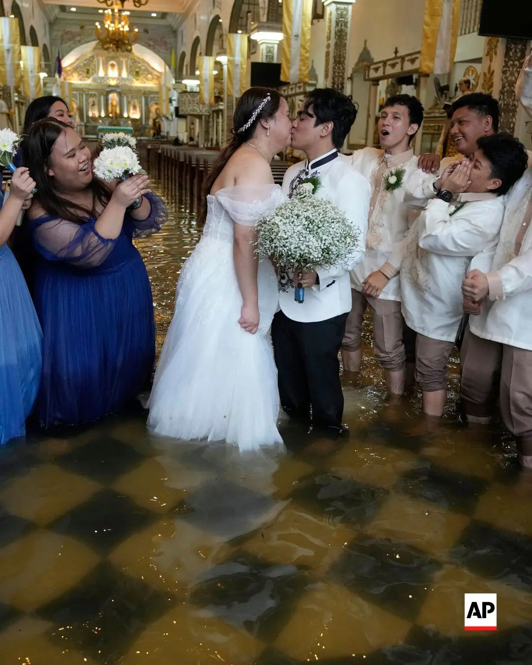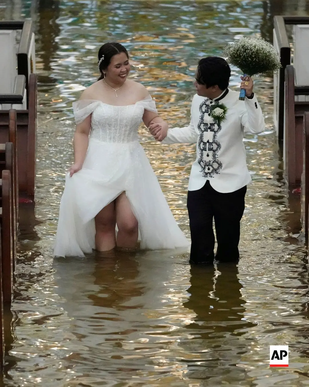 FOTO Nuntă pe timp de potop! Un cuplu filipinez a devenit celebru, după ce s-a căsătorit într-o biserică inundată