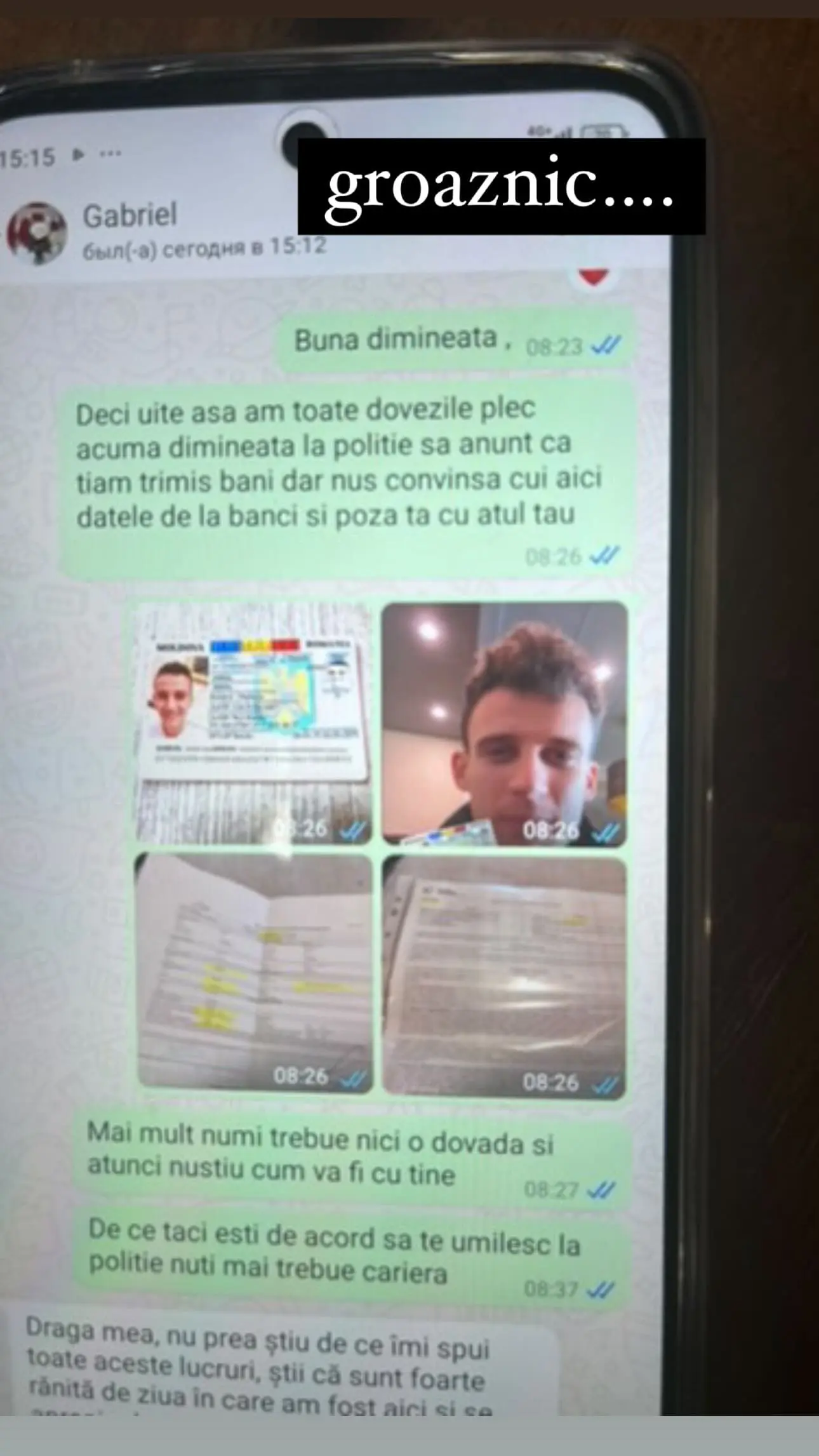 Escrocii s-au prezentat drept Gabriel Nebunu, au creat cu ajutorul photoshop-ului un fals buletin de identitate românesc, ca să-i sporească și mai mult încrederea victimei și au estorcat peste două mii de euro de la femeie.