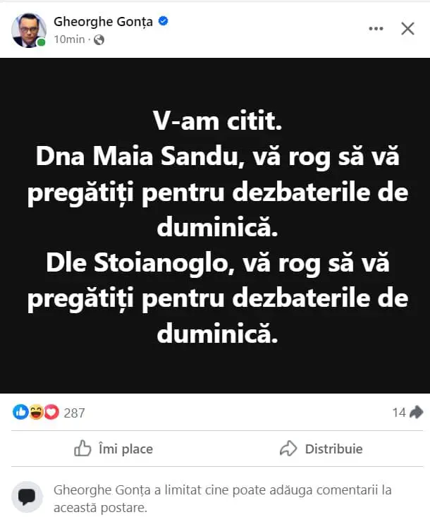 Anunțul despre faptul că jurnalistul Gheorghe Gonța, care recent a demisionat de la N4, după ce postul tv s-a disociat de postarea sa în care a îndemnat alegătorii moldoveni să voteze NU la referendum privind UE sau să nu ia buletinul deloc, va modera dezbaterile electorale înainte de turul II al alegerilor prezidențiale, dintre candidata PAS, actualul președinte Maia Sandu, și candidatul PSRM, Alexandr Stoianoglo, a provocat un val de reacții din partea colegilor de breaslă.