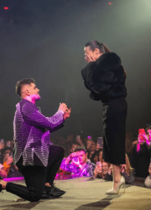 În filmuleț se poate observa că Mălina nu avea idee ce va urma, după ce a fost invitată pe scenă.. Tânăra a fost total surprinsă atunci când manelistul s-a pus în genunchi și a scos inelul de logodnă. Mai mult decât atât, iubita lui Babasha nu și-a putut stăpâni lacrimile.