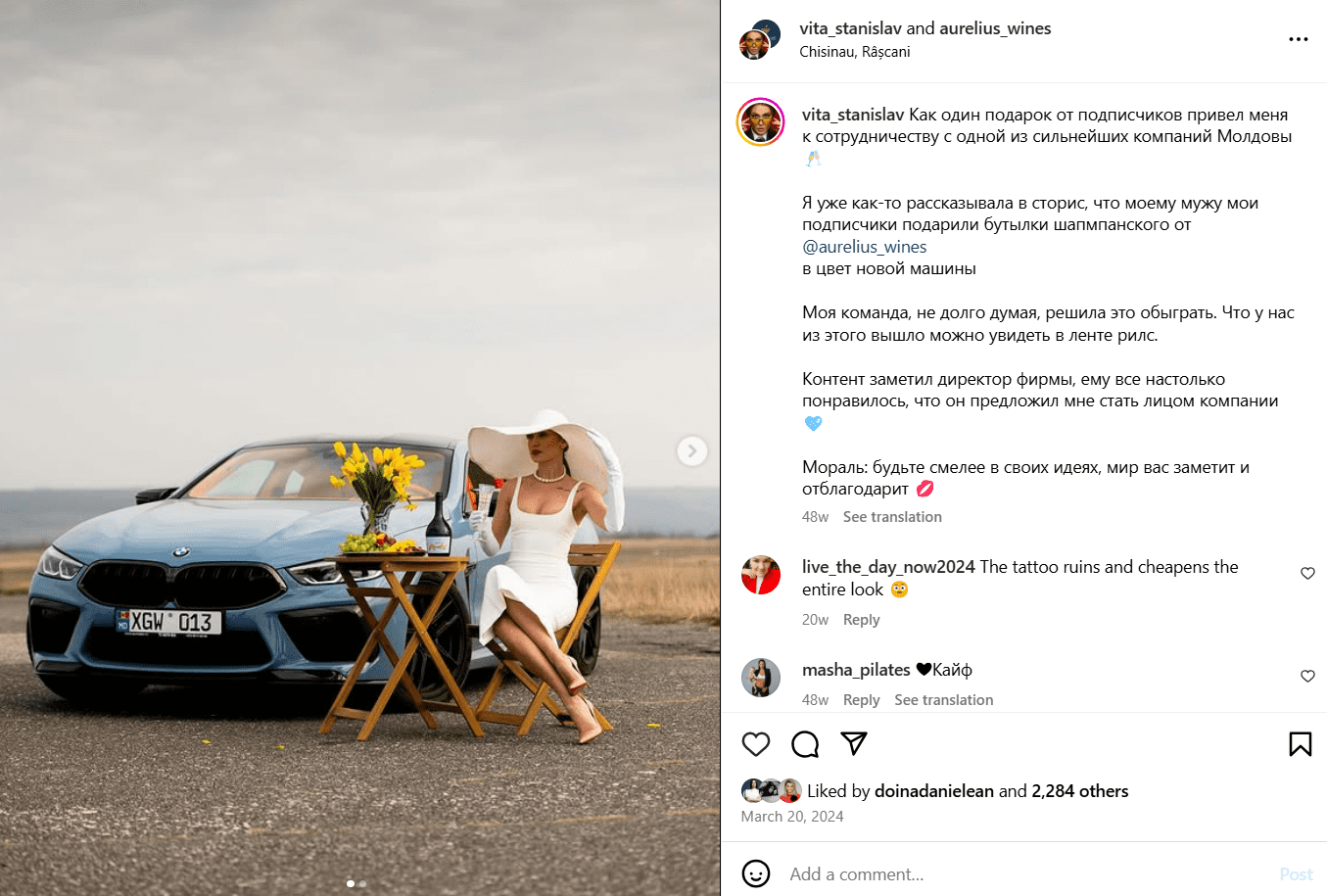 Totuși, comentatorii nu au întârziat să remarce faptul că, de-a lungul timpului, Vita a promovat diverse mărci de vin, șampanie și cocktailuri pe rețelele sociale. Acest lucru i-a făcut pe mulți să se simtă induși în eroare, întrebându-se cât de autentică este imaginea pe care și-o construiește în fața publicului.