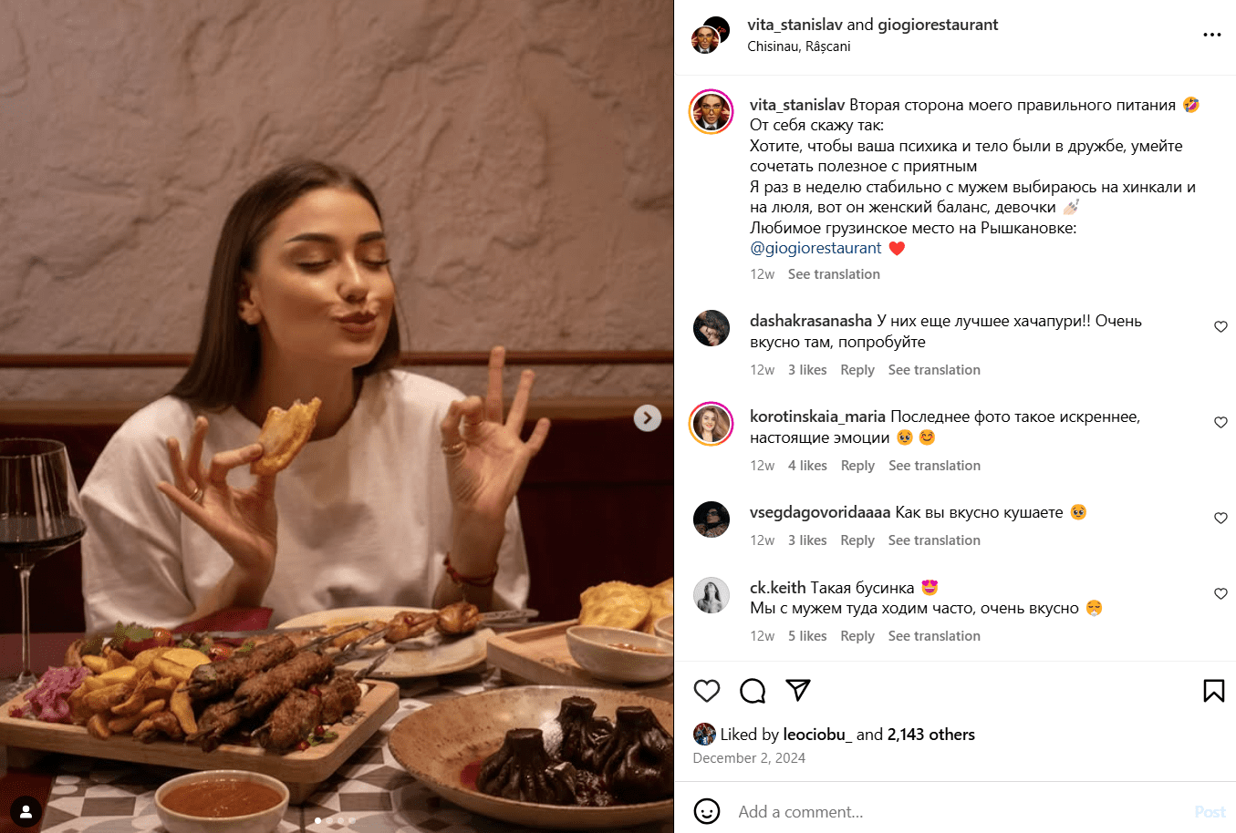Până în acest moment, influencerița nu a oferit o explicație clară despre această discrepanță. Într-una dintre postările sale, a menționat că, totuși, există a doua regulă a alimentației sănătoase. „Dacă vreți ca psihicul vostru și corpul să fie prieteni, atunci trebuie să puteți să combinați alimentația sănătoasă cu plăcerile”.