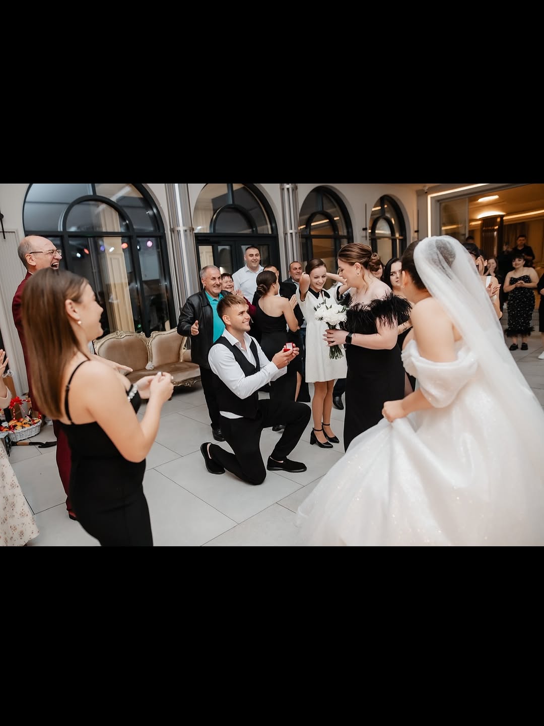 Nu vă grăbiți să-l felicitați! De fapt, își pune pirostriile sosia artistului, un tânăr care seamănă izbitor de mult cu Ionel Istrati și pe care l-a cunoscut la un concert. Bărbatul și-a cerut de mireasă iubita în timpul unei nunți, iar Istrati a publicat la el pe Instagram momentul.
