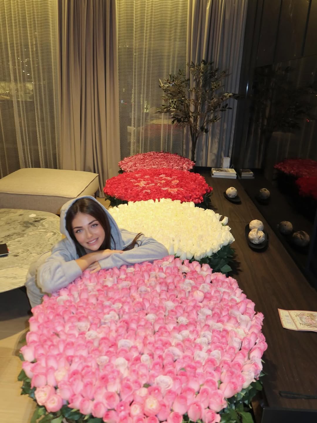 De asemenea, influencerița a scris și un mic text în descrierea postării, care trimite la ideea că florile i-au fost cumpărate de bărbatul misterios din viața ei.