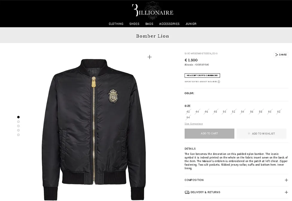 „Billionaire”, potrivit descrierii de pe site-ul oficial, se prezintă drept un brand al extravaganței și al luxului, dedicat bărbaților maturi care nu se tem să arate cine sunt și cine vor să fie. Marca face parte din portofoliul Philipp Plein International Group.