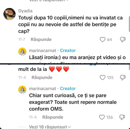 Marina Cârnaț e criticată și pentru faptul că pune accesorii pe cap fiicei de o lună și i se mai aduc reproșuri legate de faptul că ar impune standarde înalte. Influencera răspunde criticilor, încercând să-și demonstreze corectitudinea.