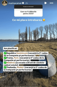 Anul trecut Marina Cârnaț a venit cu o listă similară. În 2024, familia a avut cel puțin 12 călătorii.