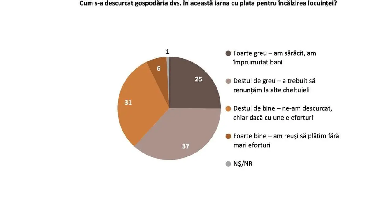 Sondajul a evaluat și cum s-au descurcat moldovenii iarna aceasta cu plata pentru încălzirea locuinței. Astfel, un sfert dintre respondenți au declarat că le-a fost extrem de greu, au sărăcit sau au fost nevoiți să se împrumute, pentru a face față cheltuielilor.