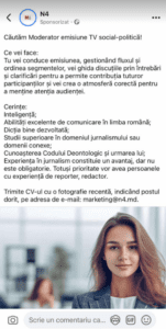 N4 caută un prezentator de emisiune social-politică, așa cum era „Puterea a Patra” moderată de Gonța.