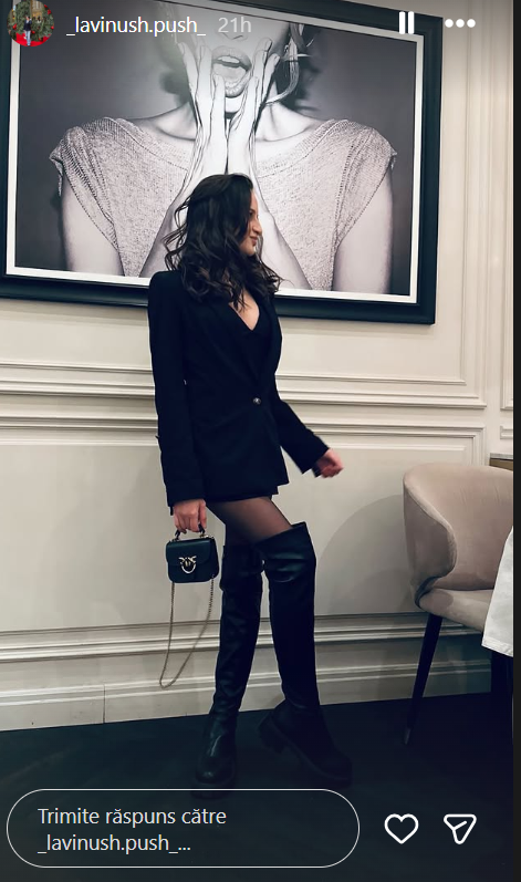 Cu o rochie de tip sacou, cu un decolteu îndrăzneț, cizme peste picior și bucle lejere, adolescenta a petrecut în compania spumei societății, într-un club de fițe din capitală, care duminică a aparținut în totalitate lui Emilian Crețu.