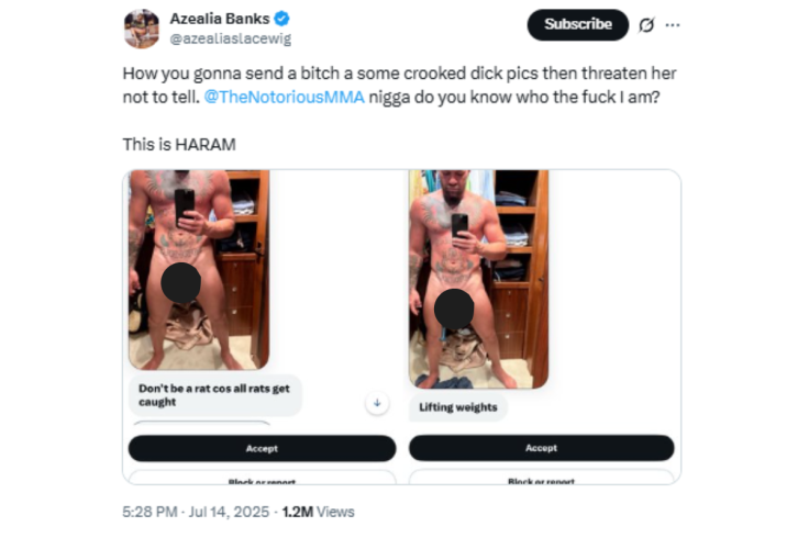 Un nou scandal sexual provocat de dublu campion UFC, Conor McGregor a zguduit showbizul la nivel internațional. Rappera Azelia Banks îl acuză pe sportiv că i-a transmis poze nud necerute prin mesaje private, iar ulterior o amenința ca să nu spună nimănui despre asta. Artista în schimb a făcut publice imaginile controversate și conversația lor.