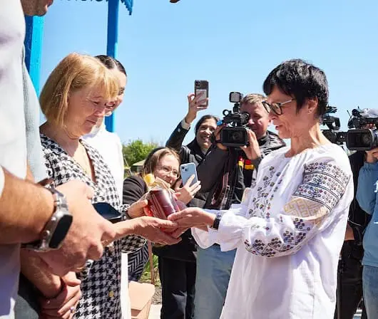 Marta Kos nu a venit cu mâna goală. Diplomata a dăruit gazdelor o băutură tradițională din Slovenia, țara sa de baștină.