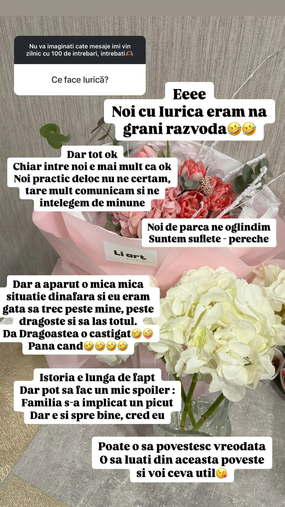 Tânăra afaceristă nu a spus verde-n ochi motivul care era cât pe ce să o determine să divorțeze la câteva luni de la nuntă, dar „a suflat” că părinții s-au implicat. Jenika scrie că va divulga totuși întreaga problemă apărută în relație, ca să le fie de învățătură altora.