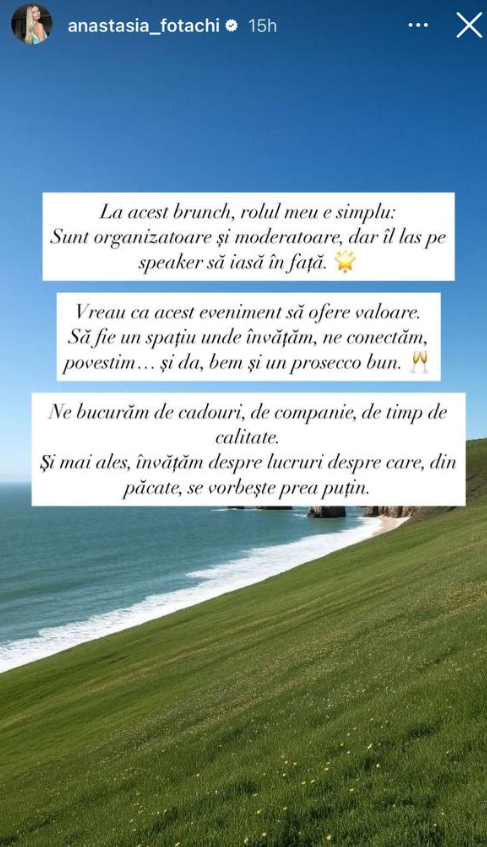 Multe mame s-au regăsit în opinia Doinei și au criticat brunch-ul organizat de Fotachi. Fotommodelul a venit cu o reacție. Soția milionarului Stati spune că este doar organizatoarea evenimentului și nu pretinde să dea lecții mamelor. Tânăra mai spune că a invitat un speaker care-și va împărtăși experiența sa, cât timp ea va modera discuția.