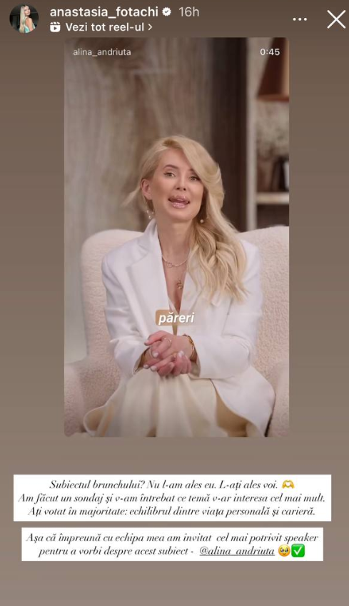 Multe mame s-au regăsit în opinia Doinei și au criticat brunch-ul organizat de Fotachi. Fotommodelul a venit cu o reacție. Soția milionarului Stati spune că este doar organizatoarea evenimentului și nu pretinde să dea lecții mamelor. Tânăra mai spune că a invitat un speaker care-și va împărtăși experiența sa, cât timp ea va modera discuția.