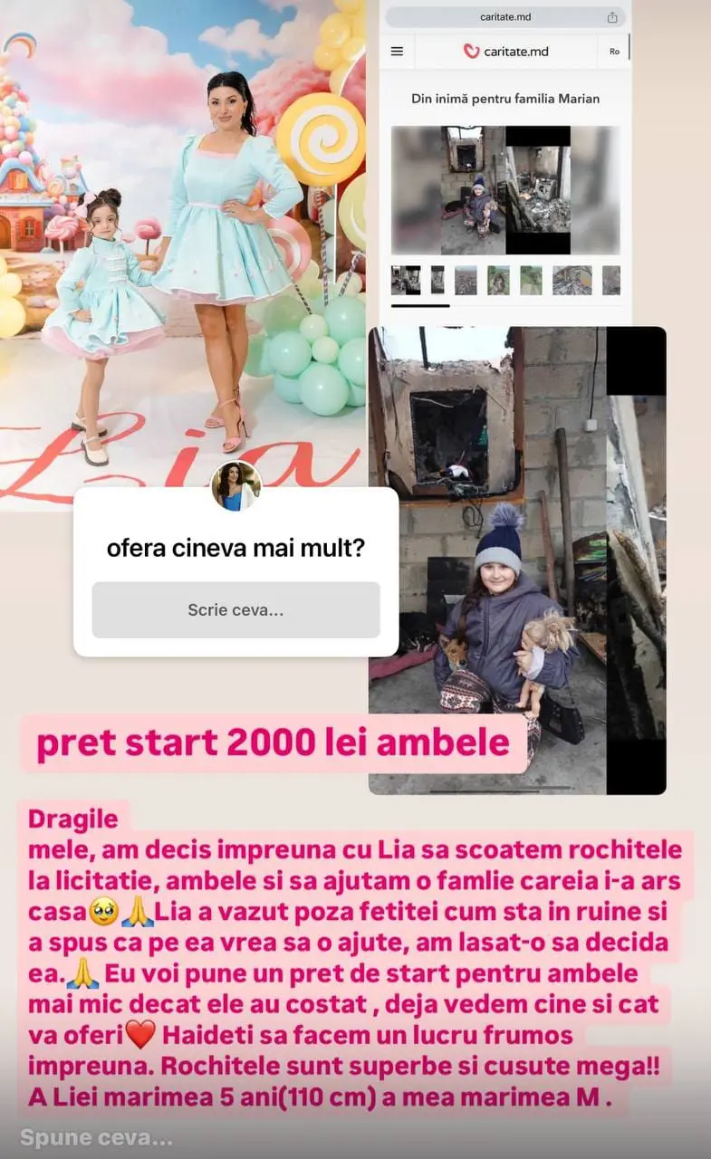 Mai mult, rochiile de poveste purtate de mamă și fiică au fost scoase la licitație, iar banii strânși vor ajuta o familie rămasă fără casă.
