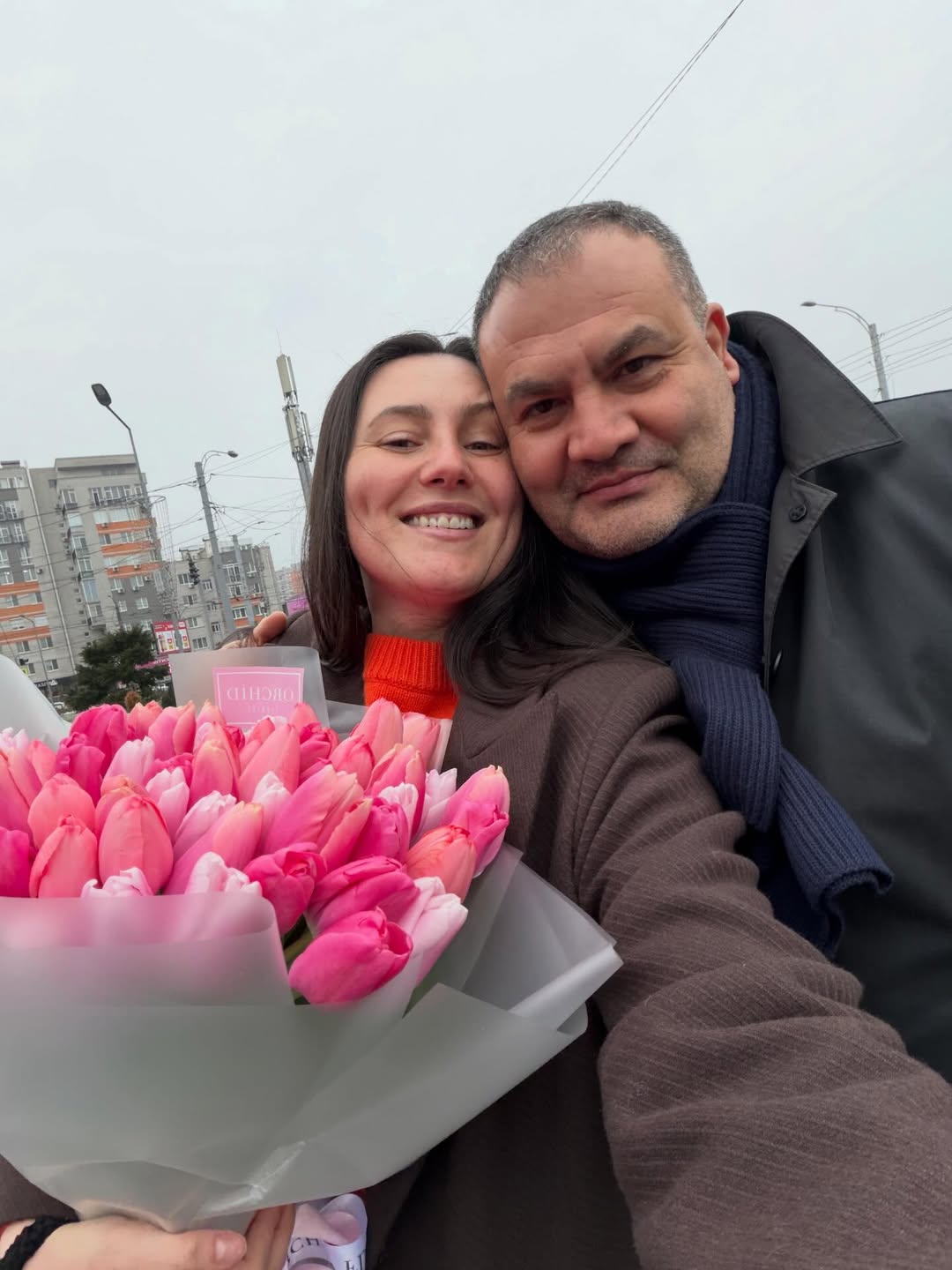 Bărbatul i-a oferit un buchet de lalele roz în plină iarnă făcându-și soția să radieze de fericire.