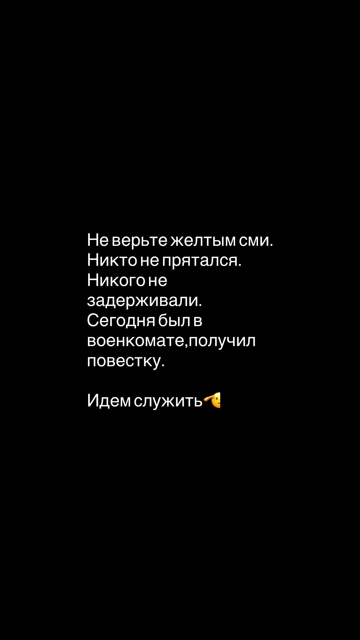 „Nu credeți presei tabloide. Nimeni nu s-a ascuns. Nimeni nu a fost reținut. Mergem să servim”, a scris Macan într-o postare adresată fanilor săi. Mesajul vine după ce artistul a publicat și un selfie dintr-un punct de recrutare din Moscova.
