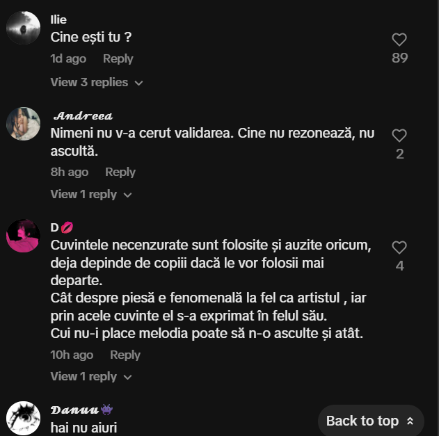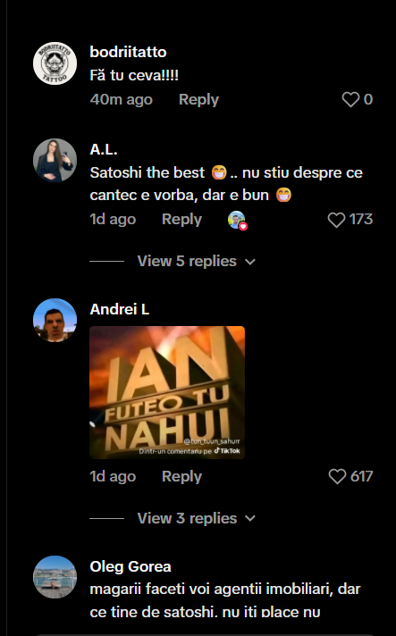 Un agent imobiliar activ pe platforma TikTok, Radu Ceban îl critică dur pe artistul momentului, unul dintre participanții la Selecția Națională Eurovision, Vlad Sabajuc alias SATOSHI. Ceban se arată nemulțumit de faptul că rapperul a utilizat în versurile piesei „Cine ești tu”, mai multe cuvinte necenzurate. Și mai mult, agentul imobiliar consideră piesa una „fără sens”, pe când internauții au apreciat înalt cântecul, considerându-l o satiră reușită a moravurilor societății.